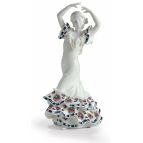 Haciendo palmas flamencas con su vestido blanco en una canasta.